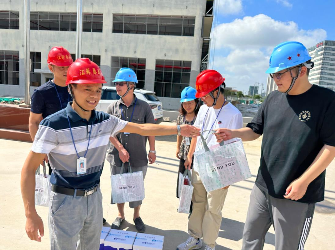 公司項管中心、督查辦、辦公室等公司領(lǐng)導(dǎo)一行先后來到華旋全過程咨詢項目、宋劍湖高中項目、吉谷新材料等施工現(xiàn)場,為一線員工送去了的防暑降溫用品和高溫補貼。