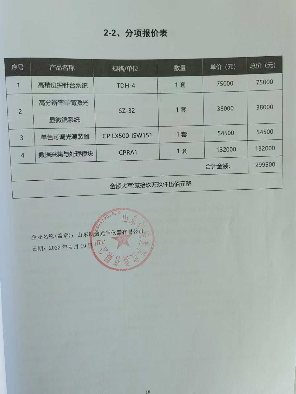 名稱:變溫高真空光電系統(tǒng) 品牌:創(chuàng)普 規(guī)格型號(hào):詳見附件 數(shù)量:1套 總價(jià):292000元 |