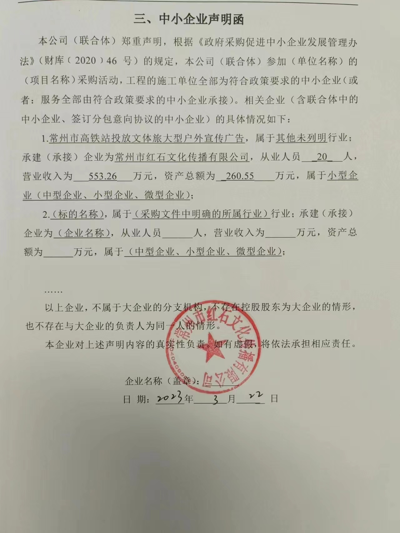 2.中小企業(yè)聲明函